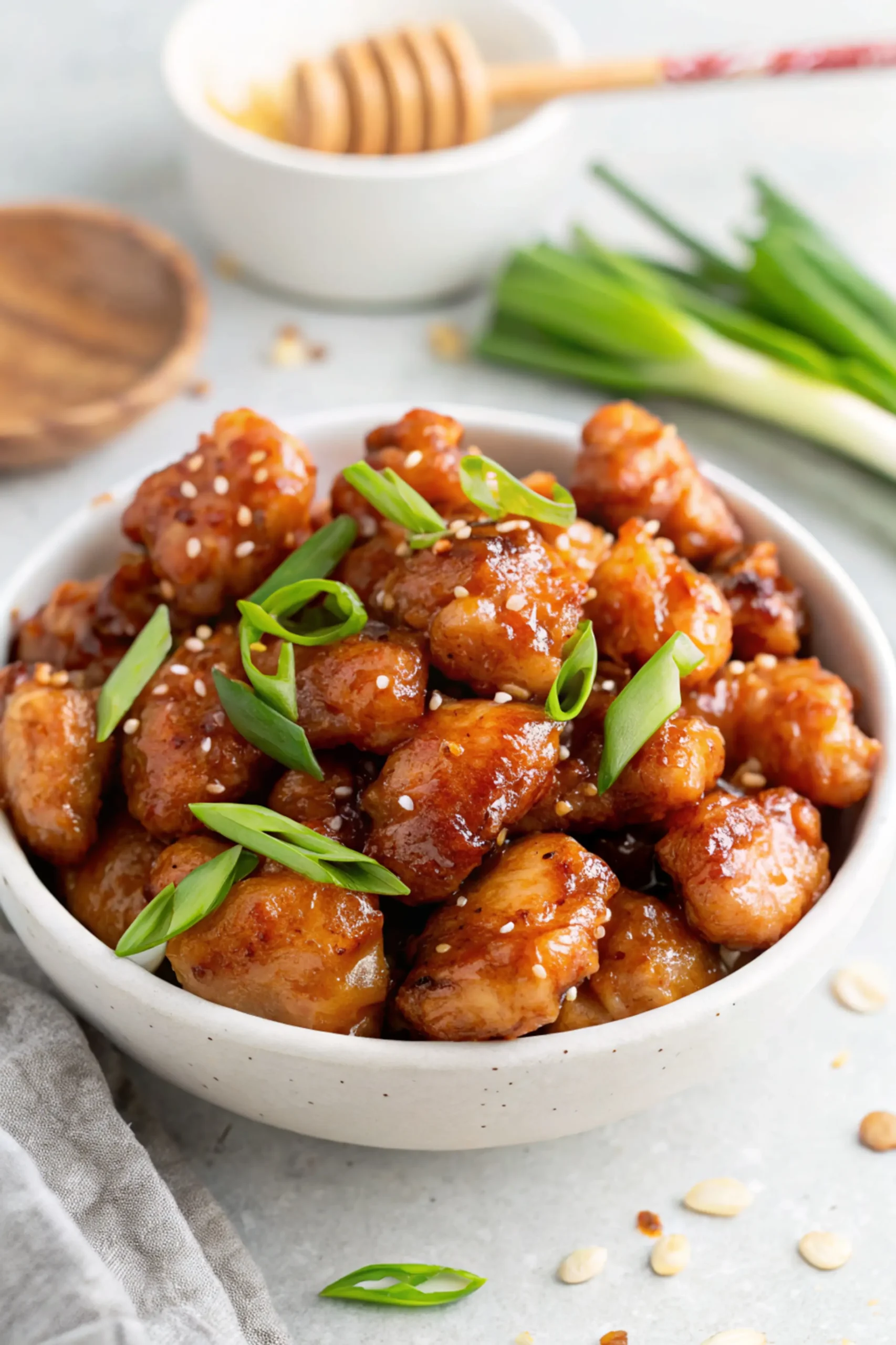 I feel like I need to explain this because I’ve made “honey chicken” before and it was just… fine. Sticky but weirdly soggy. Not something I’d bother making again.